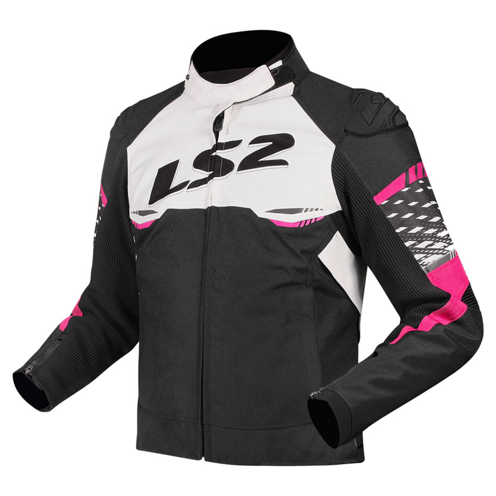 - Trieciena aizsargi: Noņemami, CE sertificēti plecu un elkoņu aizsargi (EN 1621-1:2012, 1. līmenis). Savietojams ar papildu LS2 CE krūšu un 2. līmeņa muguras aizsargiem. Aprīkots ar regulējamu elkoņu aizsarga kabatu pozicionēšanai.